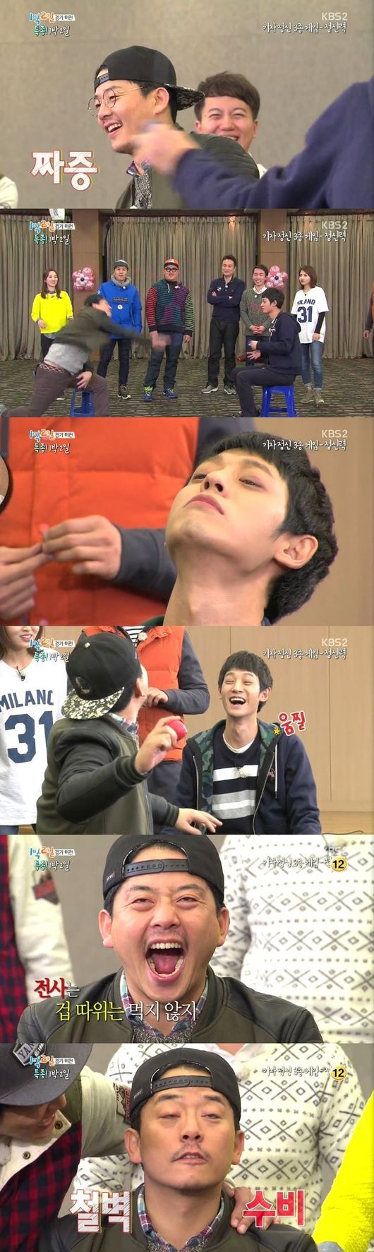 데프콘은 정준영에게 "일단 한 대 때려서 겁을 주라"고 말했고, 김준호는 정준영이 던지는 시늉만 해도 겁을 내며 "얘랑 안 하겠다. 진짜 때릴 거 같다"고 두려워했다.