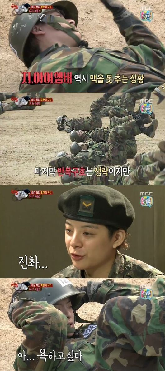 22일 오후 방송된 MBC 예능프로그램 '일밤-진짜 사나이'에서는 유격체조 8번 자세에서 고전을 면치 못하는 출연진의 모습이 그려졌다.