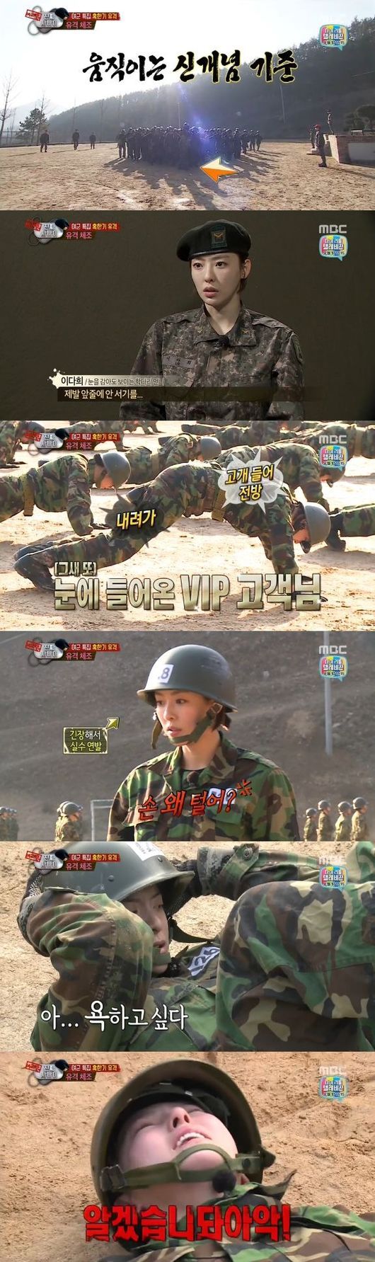 이날 방송에서 그는 유격 훈련에 돌입하자마자 VIP로 떠올랐다. 꿀성대 교관의 눈에 '딱' 들어버린 이다희는 "128번 후보생"이라는 부름을 셀 수도 없이 많이 들어야했다. 물론 그 때마다 이다희는 온갖 고생을 다했다. 교관의 집중 마크에 살아남기엔 이다희는 서툴렀다.