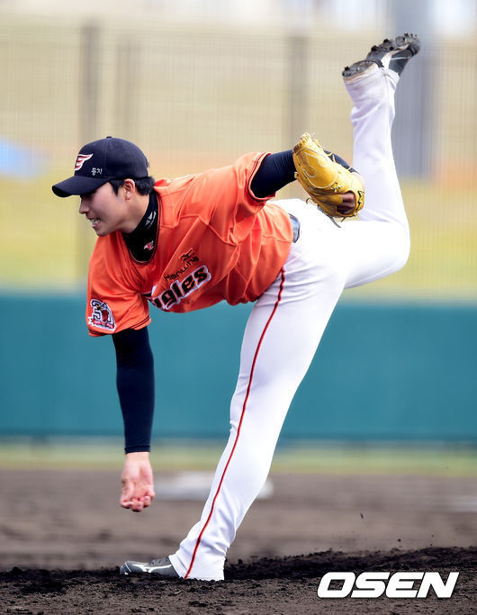 한화 신인 투수 김민우(20)가 뜨고 있다. 김성근 감독의 눈길을 사로잡으며 스프링캠프 명단에 합류한 그는 팀 내 가장 많은 이닝을 던지며 집중 테스트받고 있다. 선발과 구원을 가리지 않고 다양하게 등판하고 있는 그는 갈수록 투구 내용이 좋아지고 있다. 류현진 이후 모처럼 괴물 신인투수 탄생을 예고 중이다.