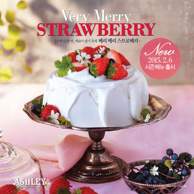 이랜드 외식사업부가 전개하는 아메리칸 그릴 & 샐러드 애슐리(www.myashley.co.kr)는 최근 신선한 제철 딸기의 맛과 영양을 가득 담은 봄 신메뉴 7종을 출시했다. '베리 메리 스트로베리(Very Merry Strawberry)'라는 콘셉트로 선보인 애슐리 봄 신메뉴는 당도가 높고 비타민 C가 풍부한 제철 딸기를 다양한 조리법으로 요리해 보다 다채로운 맛을 즐길 수 있는 것이 특징이다.