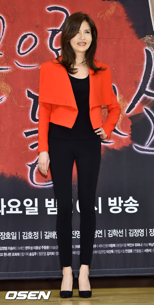 '풍문으로 들었소'의 제작발표회, 백지연이 포토타임을 갖고 있다.