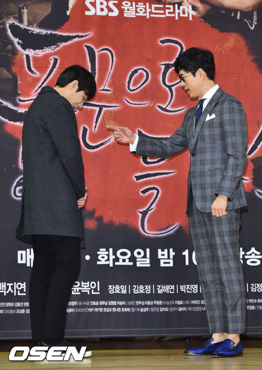 23일 오후 서울 목동 SBS사옥 SBS홀에서 열린 SBS 새 월화드라마 '풍문으로 들었소'의 제작발표회, 유준상과 이준이 포토타임을 갖고 있다.