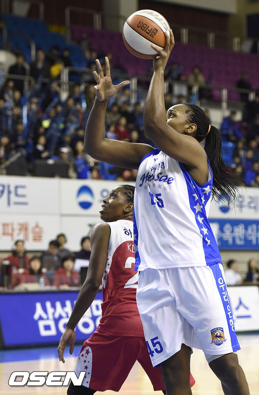 3쿼터 우리은행 굿렛이 슛을 성공시키고 있다.