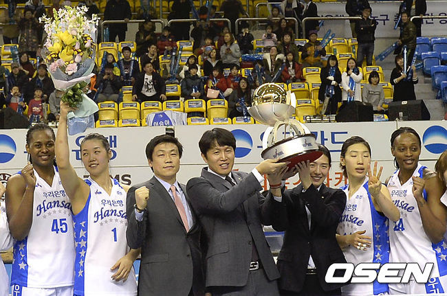 경기종료후 우리은행 감독과 선수들이 포토타임을 갖고 있다. /greenfield@osen.co.kr