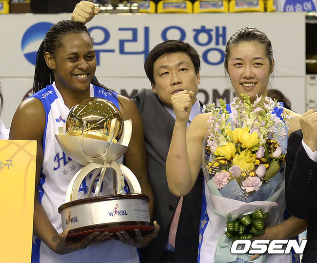 경기종료후 우리은행 굿렛과 양지희가 포토타임을 갖고 있다./greenfield@osen.co.kr