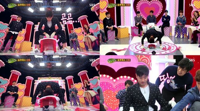 그룹 신화의 에릭이 머리로 기왓장 격파에 도전해 웃음을 선사했다.