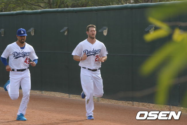 [OSEN=글렌데일(미국 애리조나주), 박승현 특파원]LA 다저스 에이스 클레이튼 커쇼(우측)이 24일(이하 한국시간) 애리조나 글렌데일 카멜백 렌치에서 계속 된 스프링 캠프 도중 달리기 훈련을 하고 있다.