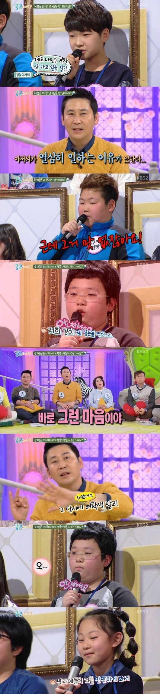 관전 포인트는 예상을 할 수 없는 아이들의 ‘돌직구’ 질문과 이를 그들의 언어로 설명해주기 위한 어른들의 진땀나는 노력들이다. 예를 들어 “어른들은 한 달 월급을 왜 안 알려주느냐?”는 질문에 어른들은 여러 차례 답을 시도했고, 끝내 “영어 수학을 아무리 잘하려 해도 잘 안 돼죠? 아빠도 마찬가지다”라며 질문을 한 어린이로부터 “궁금증이 풀렸다”는 대답을 듣게 됐다.