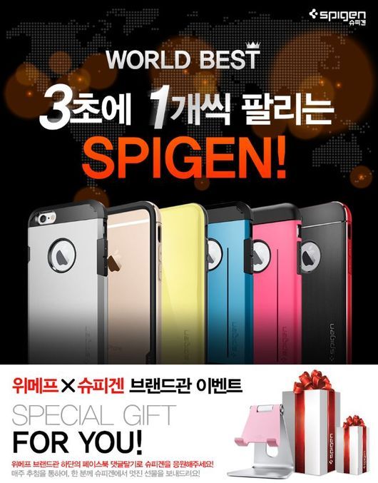 소셜커머스 위메프(대표 박은상, www.wemakeprice.com)는 오는 3월 3일까지 모바일 액세서리로는 국내 유일 코스닥 상장 업체로 유명한 슈피겐과 손잡고 특가 이벤트를 진행한다고 밝혔다.