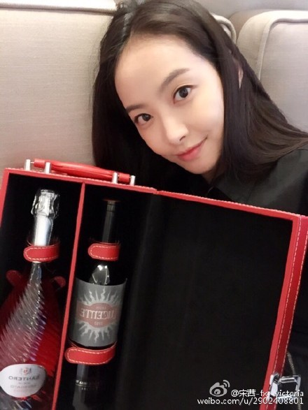 공개된 사진에서 빅토리아는 양 손에 선물로 받은 것으로 보이는 술을 들고 있다. 또한 긴 머리를 늘어트리고 카메라를 향해 청순하고 깨끗한 미소를 짓고 있어 눈길을 사로잡는다.
