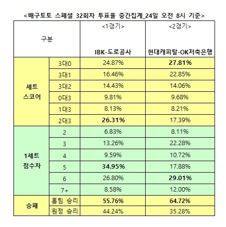 2014-2015시즌 V리그 대상 배구토토 스페셜 32회차 중간집계 결과
