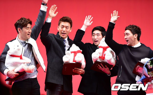 24일 오전 서울 중구 웨스틴 조선호텔에서 진행된 '제 20회 코카콜라 체육대상'에서 단체상을 수상한 펜싱남자에페대표팀이 파이팅을 외치고 있다.