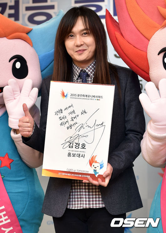24일 오후 광주 광주시청 비즈니스룸에서 진행된 2015 광주하계유니버시아드 김경호 홍보대사 위촉식에서 가수 김경호가 포즈를 취하고 있다