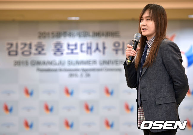 24일 오후 광주 광주시청 비즈니스룸에서 진행된 2015 광주하계유니버시아드 김경호 홍보대사 위촉식에서 가수 김경호가 소감을 말하고 있다.