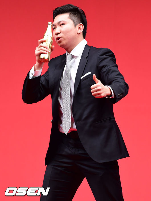 24일 오전 서울 중구 웨스틴 조선호텔에서 진행된 '제 20회 코카콜라 체육대상'에서 유승민이 코카콜라 20주년 기념 트로피에 세리머니를 하고 있다.