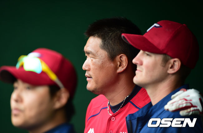 9회말 KIA 최희섭이 필과 경기를 지켜보고 있다.