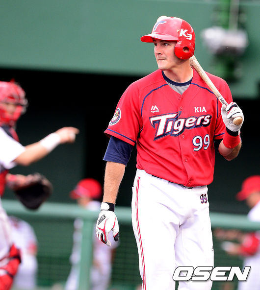 5회초 KIA 필이 삼진으로 물러나며 아쉬워하고 있다.