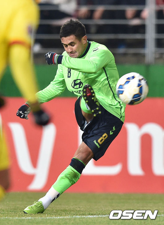 24일 오후 전주월드컵경기장서 열린 아시아축구연맹(AFC) 챔피언스리그 조별리그 E조 1차전 전북 현대(한국)와 가시와 레이솔(일본)의 경기,전반 전북 에닝요가 프리킥을 차고 있다
