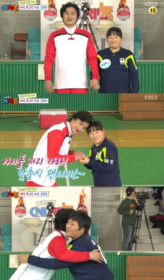 이에 강호동은 안정환을 부추겼고, 안정환은 두 명의 여성 멤버와 그 포즈를 재현했다, 이후 포옹와 손잡기 등을 해줬고, 여성 선수들의 적극적인 애정 공세에 "아이돌이 된 것 같다"고 하며 진땀을 뺐다.