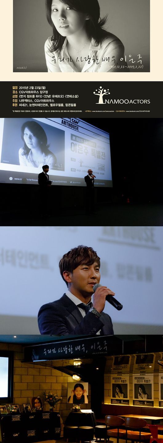 한편 이날 행사에는 나무엑터스의 배우들인 천우희, 박건형, 조한철, 신세경, 홍은희, 도지원, 윤제문, 한정수, 김혜성 등이 참석했고 영화 '송어'에 이은주와 함께 출연했던 배우 설경구도 참석해 눈길을 끌었다. 고인은 지난 2005년 2월 22일 25세의 나이로 짧은 생을 마감했다.