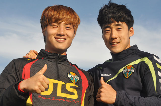 김윤호와 서보민은 강원FC 내에서도 알아주는 90년생 동갑내기 절친이다. 관동대 시절부터 시작된 인연은 강원FC에서도 이어졌다. 프로입단은 김윤호(2013년)가 서보민(2014년)보다 1년 더 빨랐다. 쿤밍 전지훈련에서 만난 김윤호는 서보민을 가리키며 “작년에 보민이가 성공적인 데뷔시즌을 보낼 수 있었던 것은 전적으로 선배인 내 도움이 있었기 때문”이라고 웃었다. 옆에 있던 서보민은 “윤호가 저렇게 말하니 정말 징글징글하다”면서 너스레를 떨었다.