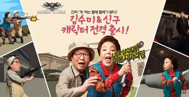 오랜 연기 경력에도 각종 예능 프로그램과 영화 등을 통해 끊임없이 새로운 모습을 선보여 국민들로부터 많은 사랑을 받고 있는 김수미와 신구는 게임 속 캐릭터로도 무대를 확장, 특유의 코믹하고 익살스러운 이미지를 서든어택 이용자들에게 전달하게 됐다.