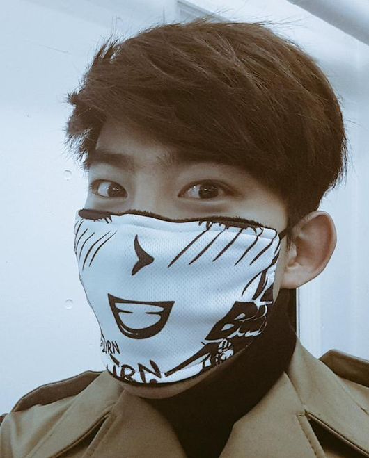 사진 속 옥택연은 코와 입이 그려진 마스크를 쓴 채 카메라를 바라보고 있다. 장난기 넘치는 눈빛이 보는 이들의 시선을 사로잡는다.