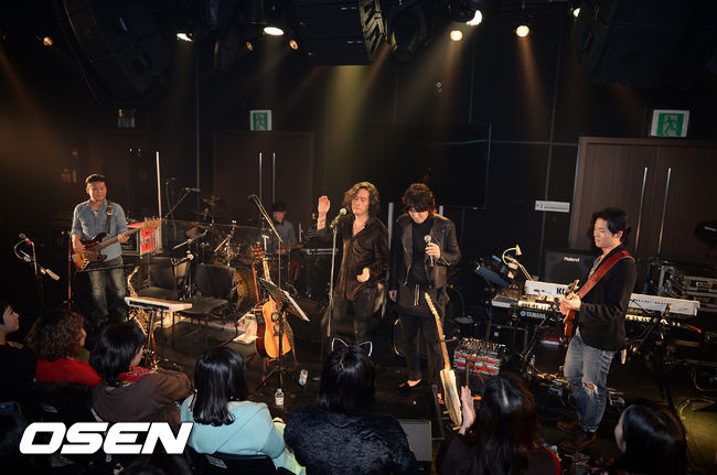 25일 오후 서울 종로구 홍익아트센터 소극장에서 진행된 가수 김장훈과 배우 최민수의 콜라보 공연에서, 김장훈과 최민수가 함께 열창을 하고 있다.