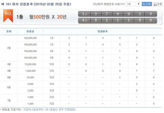[OSEN=이슈팀]제191회차 연금복권 당첨번호가 공개됐다.