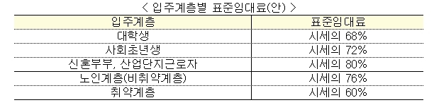 ▲정부는 임대료의 상한선인 표준임대료를 기준을 설정하고 사업시행자가 기준으로 산정한 표준임대료 이하의 범위에서 실제 임대료를 결정한다.