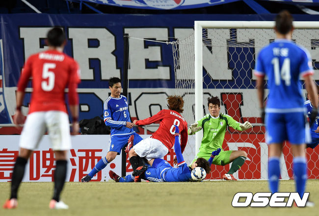 전반전 수원 김은선, 양상민이 우라와 카시와기의 슈팅을 수비하고 있다. /greenfield@osen.co.kr