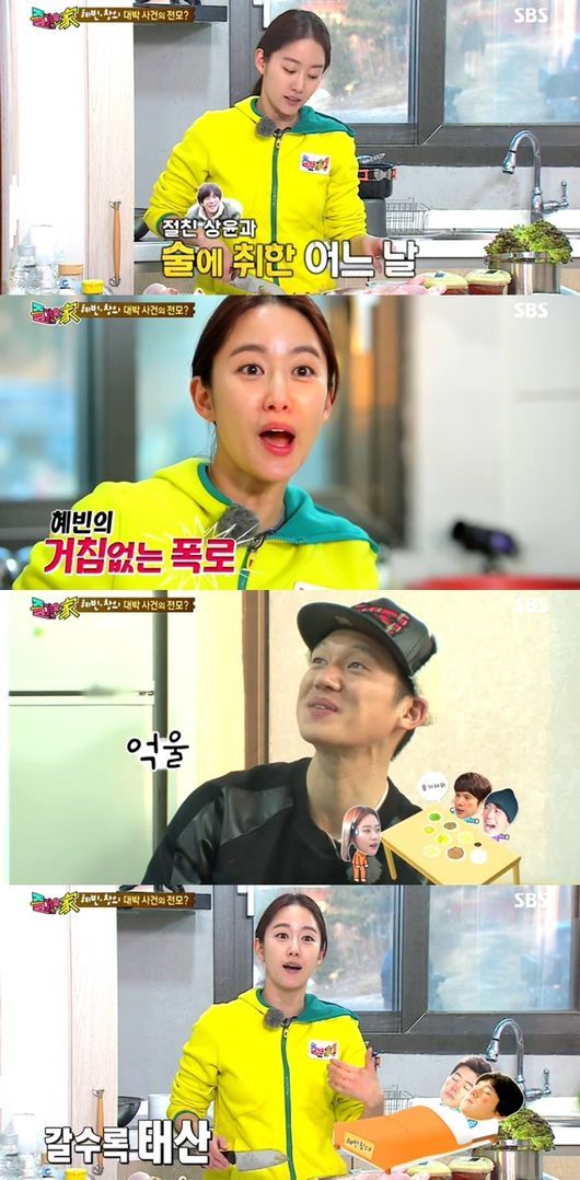 전혜빈은 25일 오후 방송된 SBS ‘에코빌리지 즐거운 家(이하 ’즐거운가‘)’에서 “송창의가 만취해서 소리를 계속 지르더라”고 말했다.