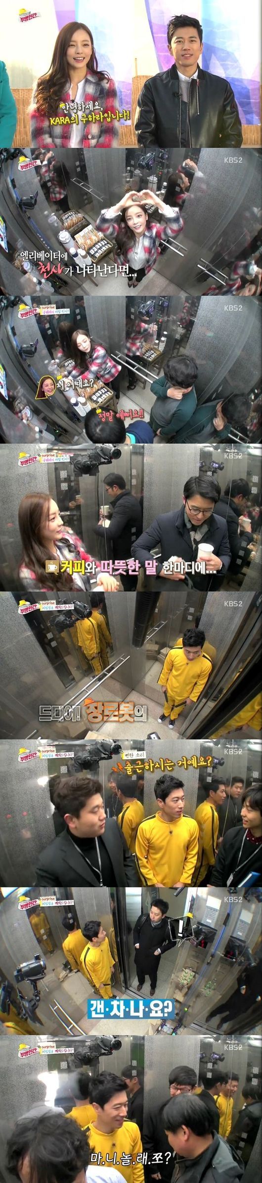 구하라와 장수원은 25일 오후 방송된 KBS 2TV 예능프로그램 '투명인간'에서 게스트로 출연했다.