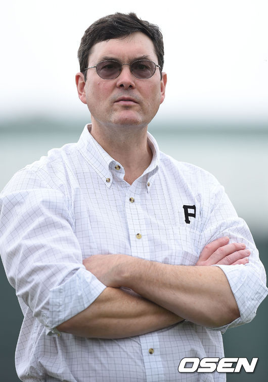 피츠버그 밥 너팅 구단주가 훈련을 지켜보고 있다.
