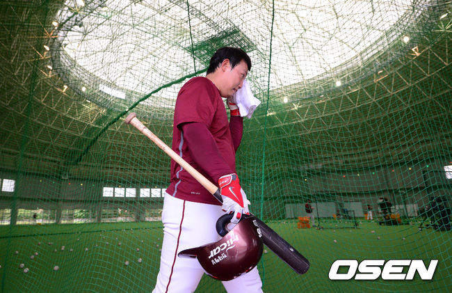 오키나와 긴 구장에서 열린 연습경기에서 넥센 외야수 강지광(25)은 경기가 끝나도 그라운드 흙을 벗어나지 않고 있었다. 이날 3안타 2타점을 기록하며 맹활약하고 난 뒤에도 뭔가 깊은 여운이 남은 모습이었다.