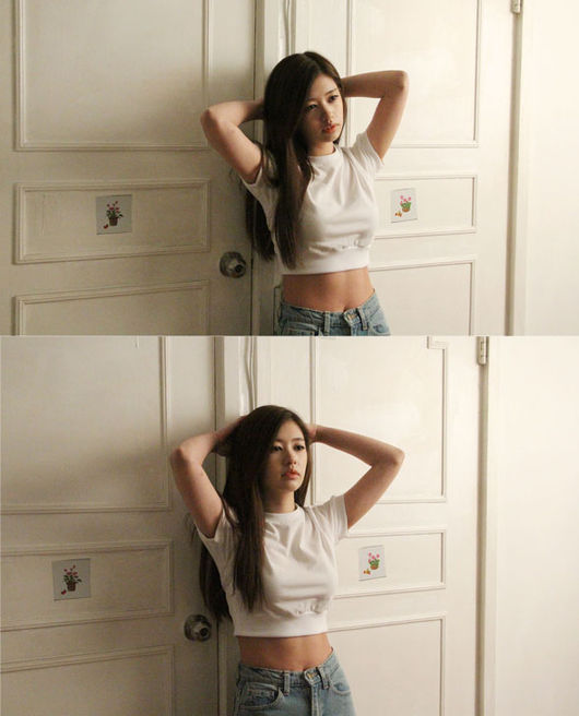 공개된 사진 속 정소민은 청바지에 비니를 매치해 당돌한 소녀의 느낌을 주는 동시에 긴 생머리를 늘어트리고 화이트 크롭탑에 살짝 노출된 복근과 함께 카메라를 보는 신비스러운 눈빛으로 섹시하면서도 도발적인 숙녀의 매력을 동시에 발산하고 있다.