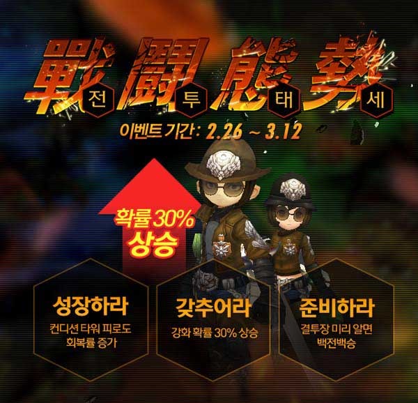 ‘전투태세’ 이벤트는 이날부터 오는 3월 12일까지 진행된다. 이벤트 페이지를 통해 ‘결투장’ 시스템을 미리 맛볼 수 있어 이용자들의 기대를 모으고 있다.