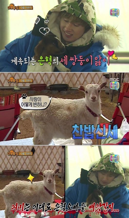그 중 은혁은 아기 염소를 안고 “강아지 같아”를 연발하며 삼둥이 아기 염소에 유난히 푹 빠진 모습을 보였다.