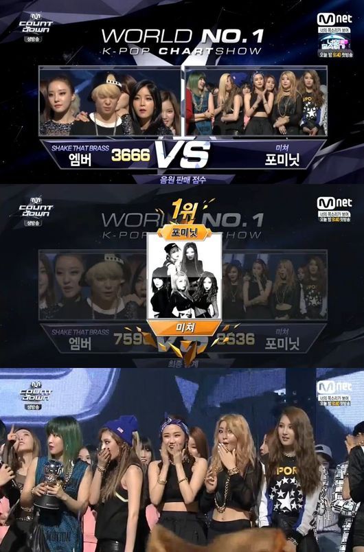 걸그룹 포미닛이 '미쳐'로 '엠카운트다운'에서 1위 트로피를 들어올렸다. 2주 연속 1위다.