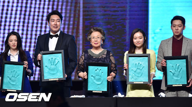 26일 오후 인천 중구 네스트호텔 바움홀에서 열린 맥스무비 최고의 영화상 시상식, 시상식을 마치고 핸드프린팅 행사가 진행되고 있다.