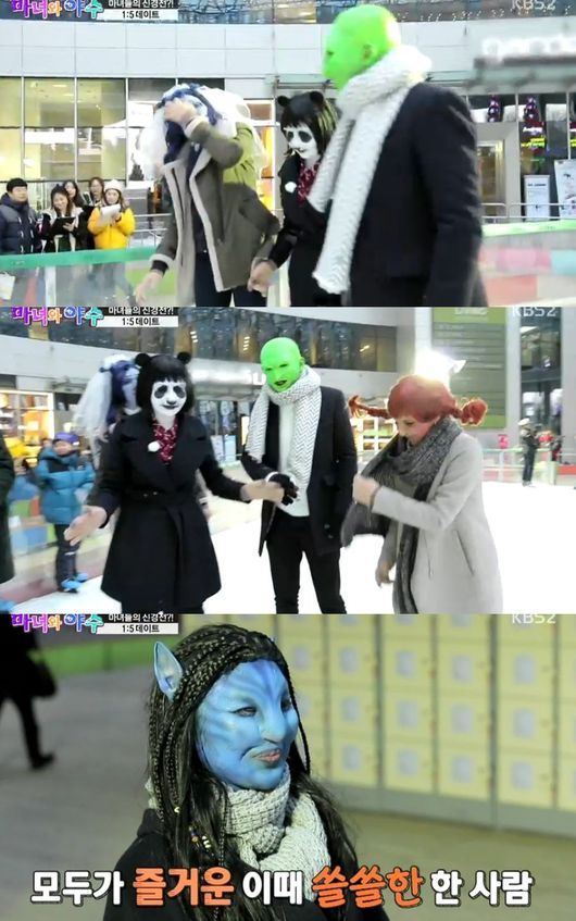 26일 방송된 KBS '마녀와 야수'에서는 6명의 여성 출연자가 1명의 남성 출연자와 데이트를 하는 내용이 전파를 탔다. 판다, 아바타, 삐삐 등을 분장한 여성 출연자와 마스크로 분장한 남성 출연자가 출연했고, 뷔페 레스토랑에서 첫번째 데이트를 했다.