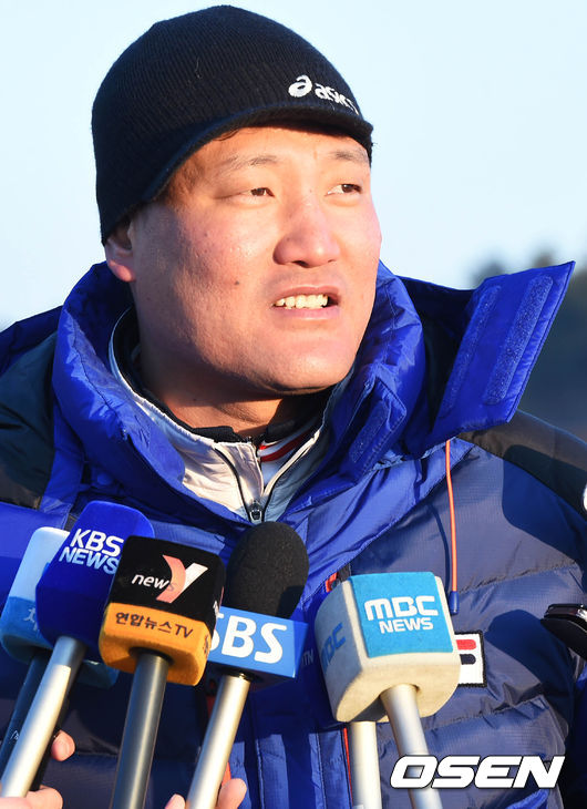 27일 오전 강원도 삼척시 증산해수욕장에서 열린 핸드볼 국가대표 남자 대표팀 첫 촌외훈련에서 둘째날 일정에서 윤경신 감독이 인터뷰에 임하고 있다.