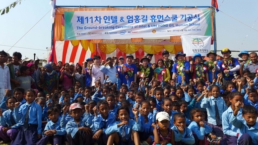 엄홍길휴먼재단 네팔 11차 휴먼스쿨 기공식. / 인텔 제공.