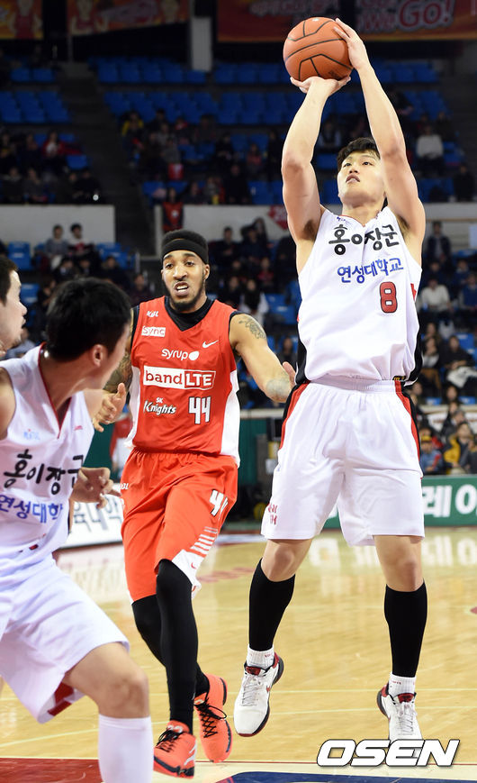 27일 오후 서울 잠실학생체육관에서 열린 '2014-2015 KCC 프로농구' 서울 SK와 안양 KGC의 경기, 2쿼터 안양 최현민이 슛을 시도하고 있다.