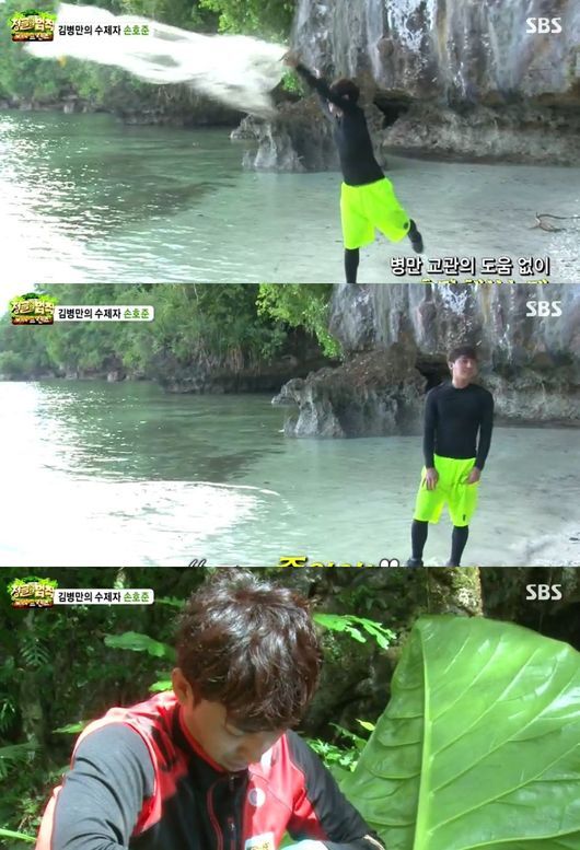 이날 손호준은 김병만에게 생존과 관련된 여러가지를 배우며 '수제자'로 거듭나는 모습을 보였다.