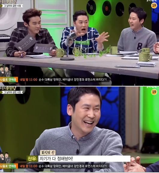 27일 방송된 JTBC '마녀사냥'에는 성격 급한 남자 친구로 힘들어하는 여자의 사연이 공개됐다. 이날 출연진들은 자신들의 성격도 얼마나 급한가에 대해 이야기했고, 이날 게스트로 출연한 컬투 정찬우는 "신동엽씨는 회식할 때 급하다. 회식할때 낮부터 장소 정할려고 여기저기 전화하고 난리다"고 폭로했다.