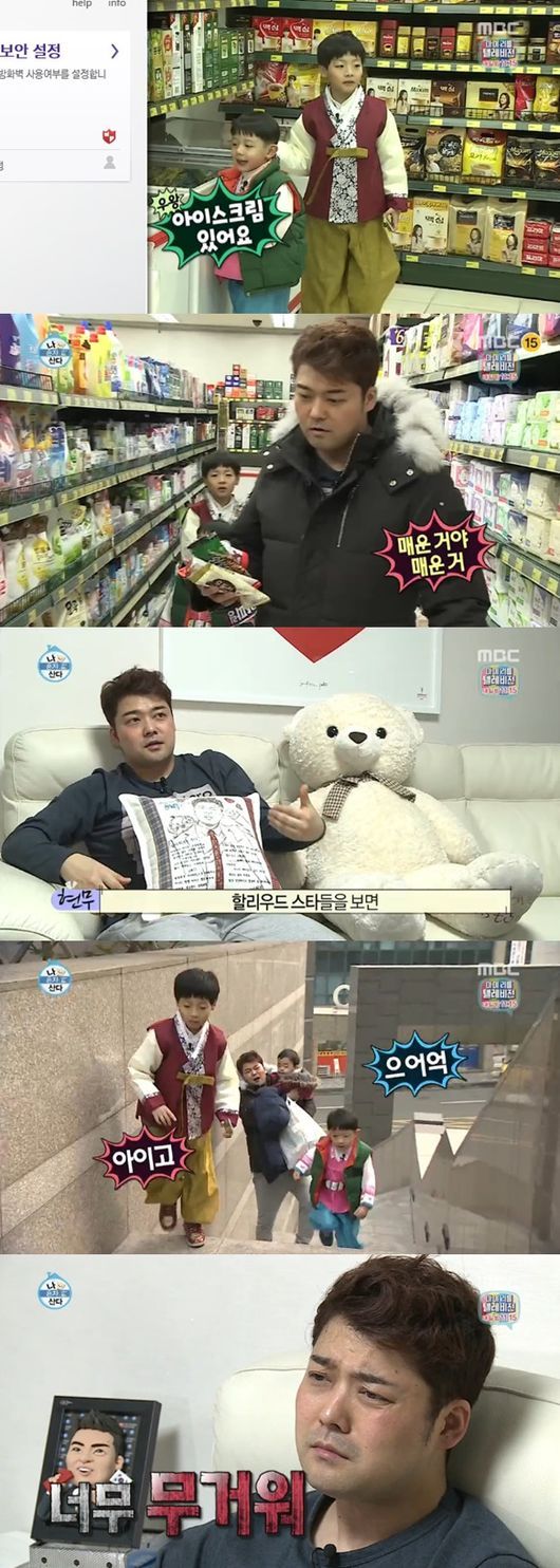 짐을 든 채 민기 군을 안는 일은 너무 힘들었다. 전현무는 “아이 아버지가 되면 아이를 한 손에 안는 것에 대한 로망이 있었다. 너무 무겁다. 팔이 빠질 뻔 했다. 운동을 해야할 것 같다”라고 한숨을 쉬었다.
