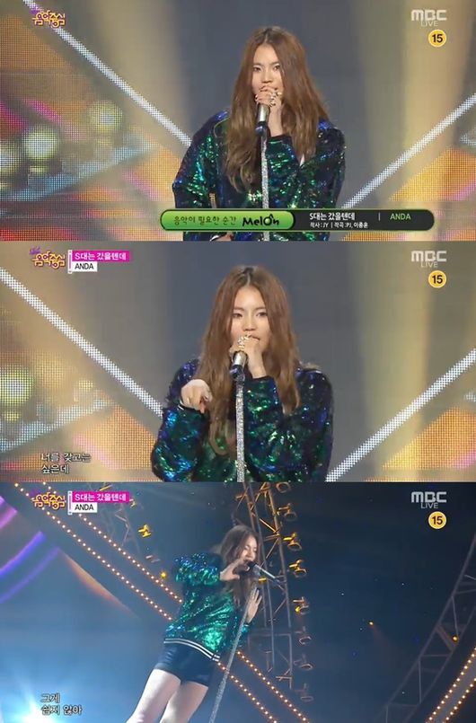 안다는 28일 오후 방송된 MBC ‘쇼, 음악중심’에서 타이틀곡 ‘S대는 갔을텐데’를 열창, 화려한 무대를 꾸몄다.