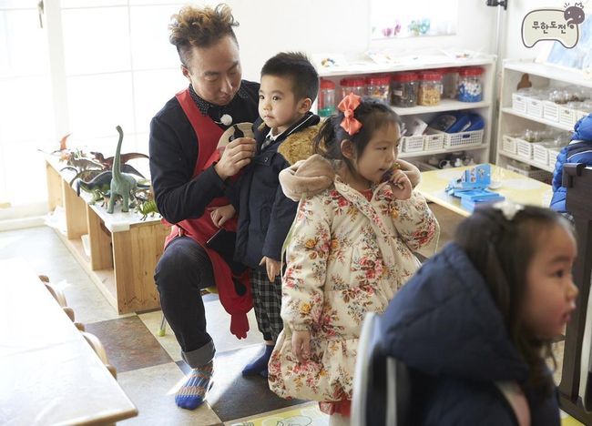 '무한도전' 공식 트위터는 28일 유재석, 박명수, 정준하, 정형돈, 하하가 어린이들과 함께 시간을 보내는 사진을 공개하면서 '무도어린이집 3월 7일 토요일 오픈합니다!'라고 예고했다.
